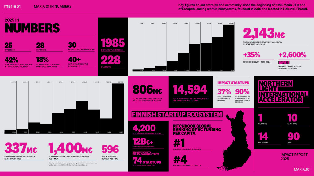“At Maria 01, we are building the ecosystem, talent, and visibility necessary for promising companies to become world leaders. This is not just growth. It’s a new era for Finnish innovation on the global stage,” Runeberg concludes.