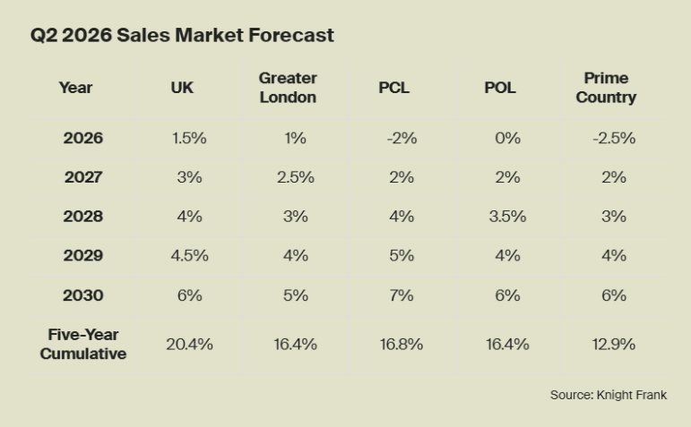 Despite broad market uncertainty, Knight Frank has raised its longer-term forecasts on the assumption that a new government will take office in 2029.